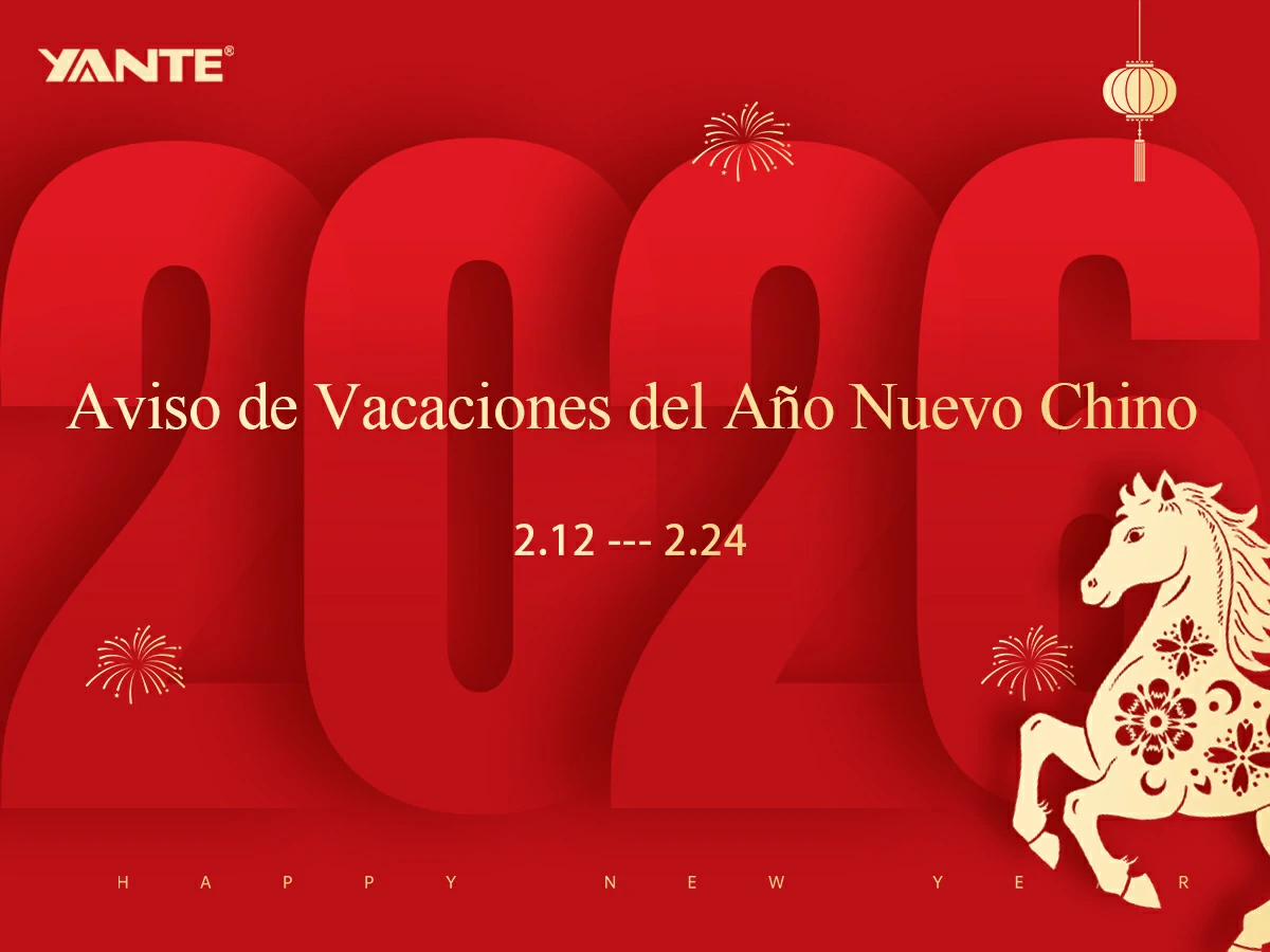 Se acerca el Ao Nuevo Chino. De acuerdo con el espritu de la "Decisin sobre la modificacin de las Medidas para la celebracin de festivos y conmemoraciones nacionales", y considerando la situacin real de la empresa, YANTE informa lo siguiente…